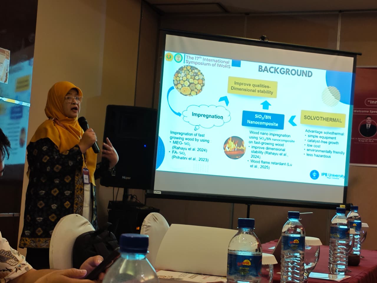 On September 21, 2025, the lead researcher, Dr. Istie Sekartining Rahayu, S.Hut, M.Si, disseminated the results of the research entitled Dimensional Stability of SiO2/BN Nanocomposite-Modified Wood at the IWORS 2025 (The 17th International Symposium of the Indonesian Wood Research Society) in Mataram, Lombok. The dissemination occurred in the form of a comprehensive international scientific symposium. The …